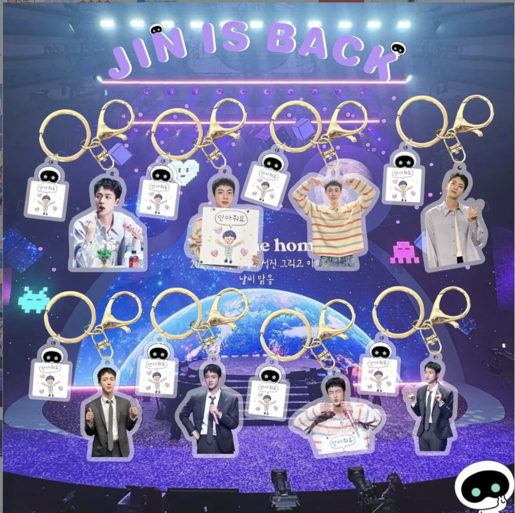Price for 8pcs/set bts jin is back keychain